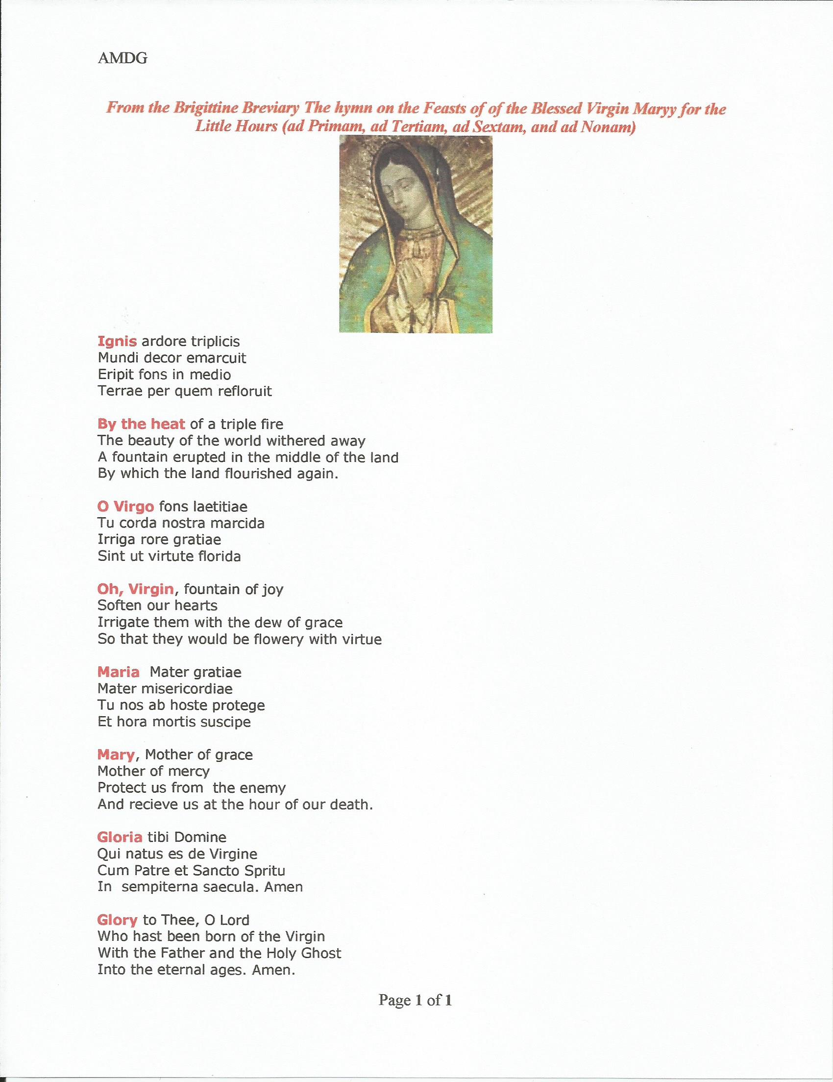 - Hymn for the Feasts of Our Lady (from the Brigittine Office)