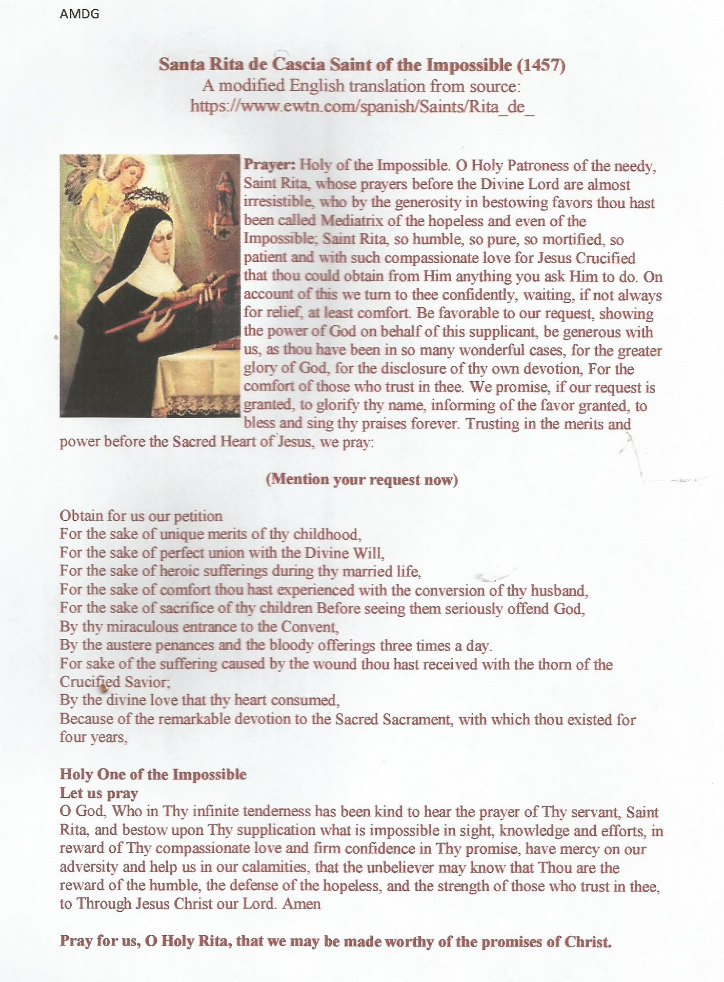 Almighty everlasting God, show forth Thy power by granting our petition through the intercession of Saint Maria Elizabeth so that all may see how beloved she is in Thy sight.