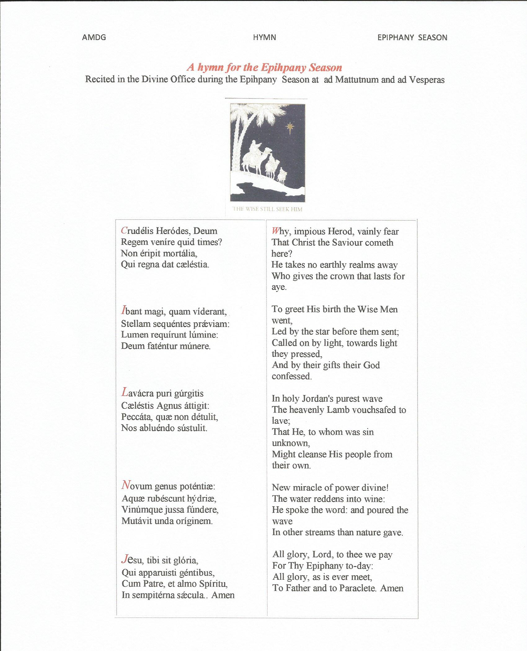 - Hymn for the Feast of the Sacred Heart at ad Matutinum